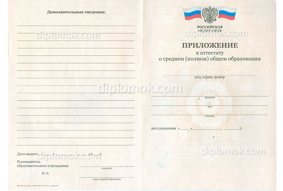 Купить аттестат за 11 класс 2010-2013 годов на Гознаке