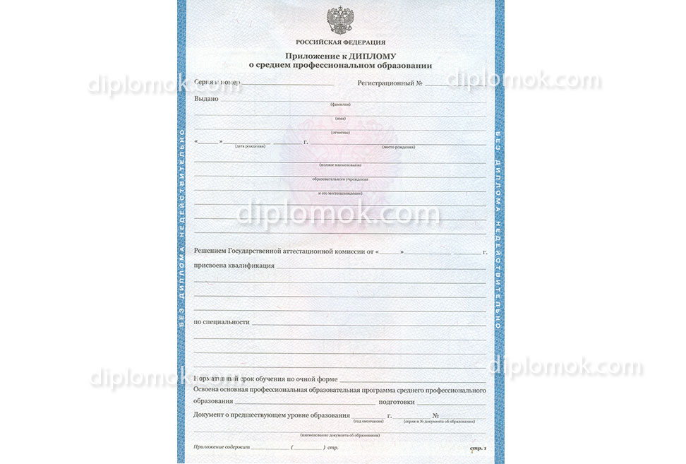 Приложение к диплому ссуза нового образца 2014-2025 года. Оригинальный Гознак. Подробнее о дипломе ССУЗа 2014-2025